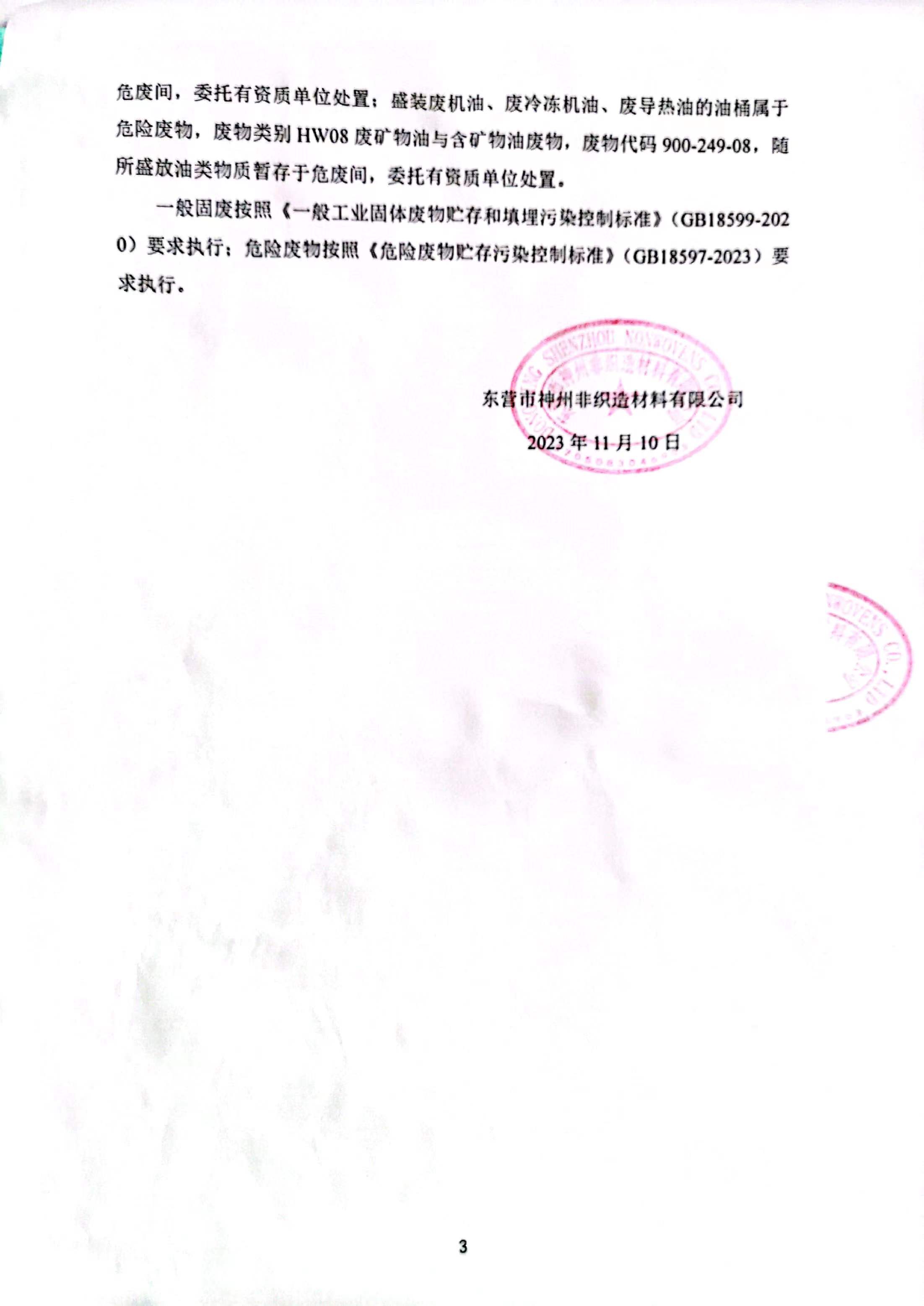 东营市神州非织造材料有限公司 SSMMSS高端医疗卫材生产技 术升级改造项目调试起止日期公开